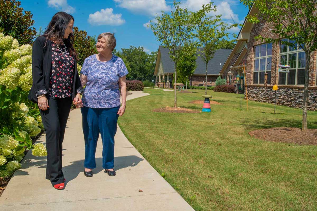 Antebellum James Burgess is an assisted living and memory care senior living community in the quaint city of Suwanee, Georgia. Our beautiful active and engaging senior community boasts beautiful, welcoming gardens accompanied by private fencing to grant a sense of solitude and peace. The building is one-level, has handrails throughout, and features a boutique style design and decor that residents love.