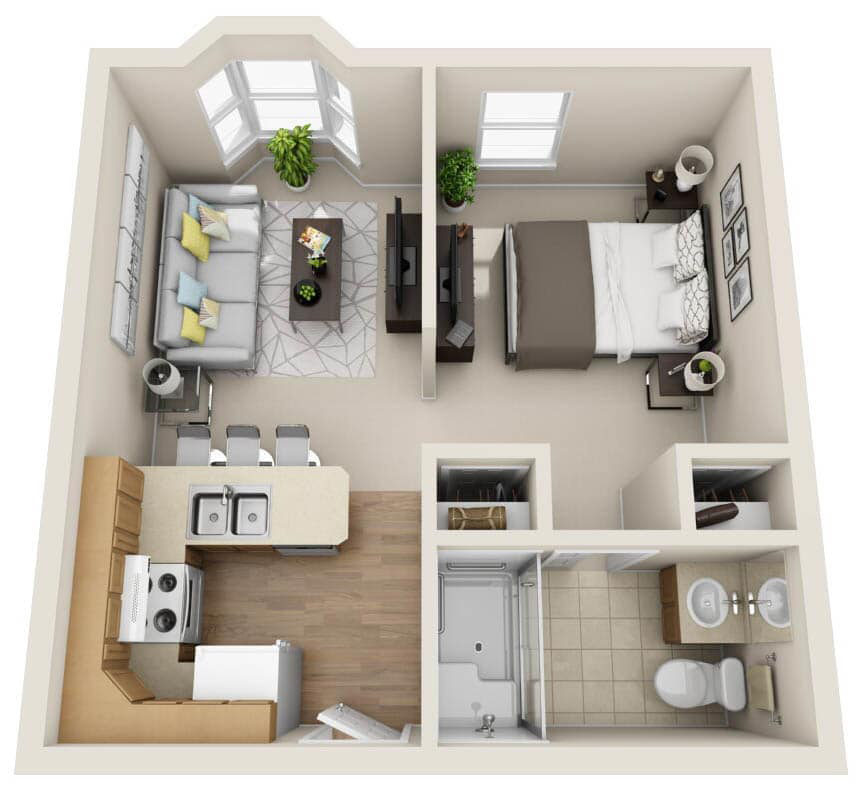 Our one-story senior living community is close to shopping, neighborhoods, churches, hospitals, and a police and fire station, providing security, convenience, and a small-town feel in a larger community for our residents, family members, and staff partners. We provide assisted living and independent living services.