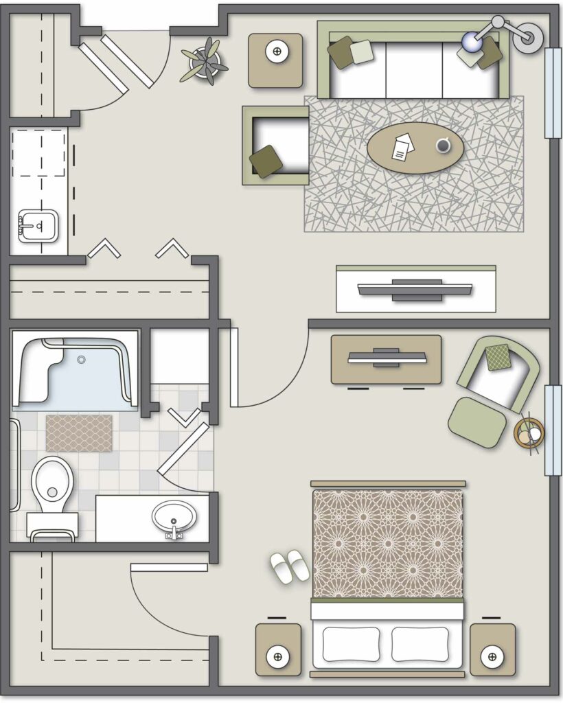 Our community is a one-level Assisted Living community that features 56 senior apartments and suites. The grounds feature an expansive courtyard and even a walking track around the building that promotes healthy activity. We ensure a delightful experience by offering amenities such as southern-style cooking, beauticians and barbers, housekeeping services, and much more!
