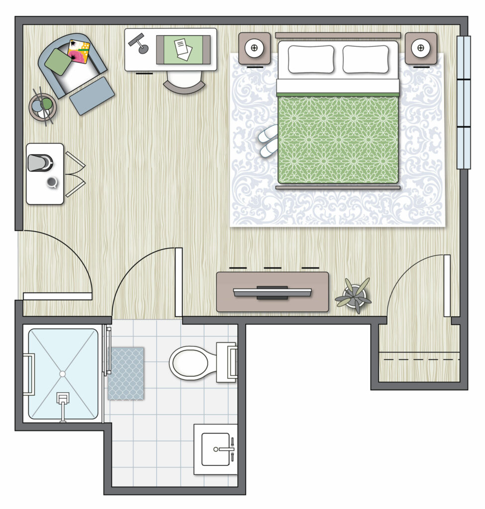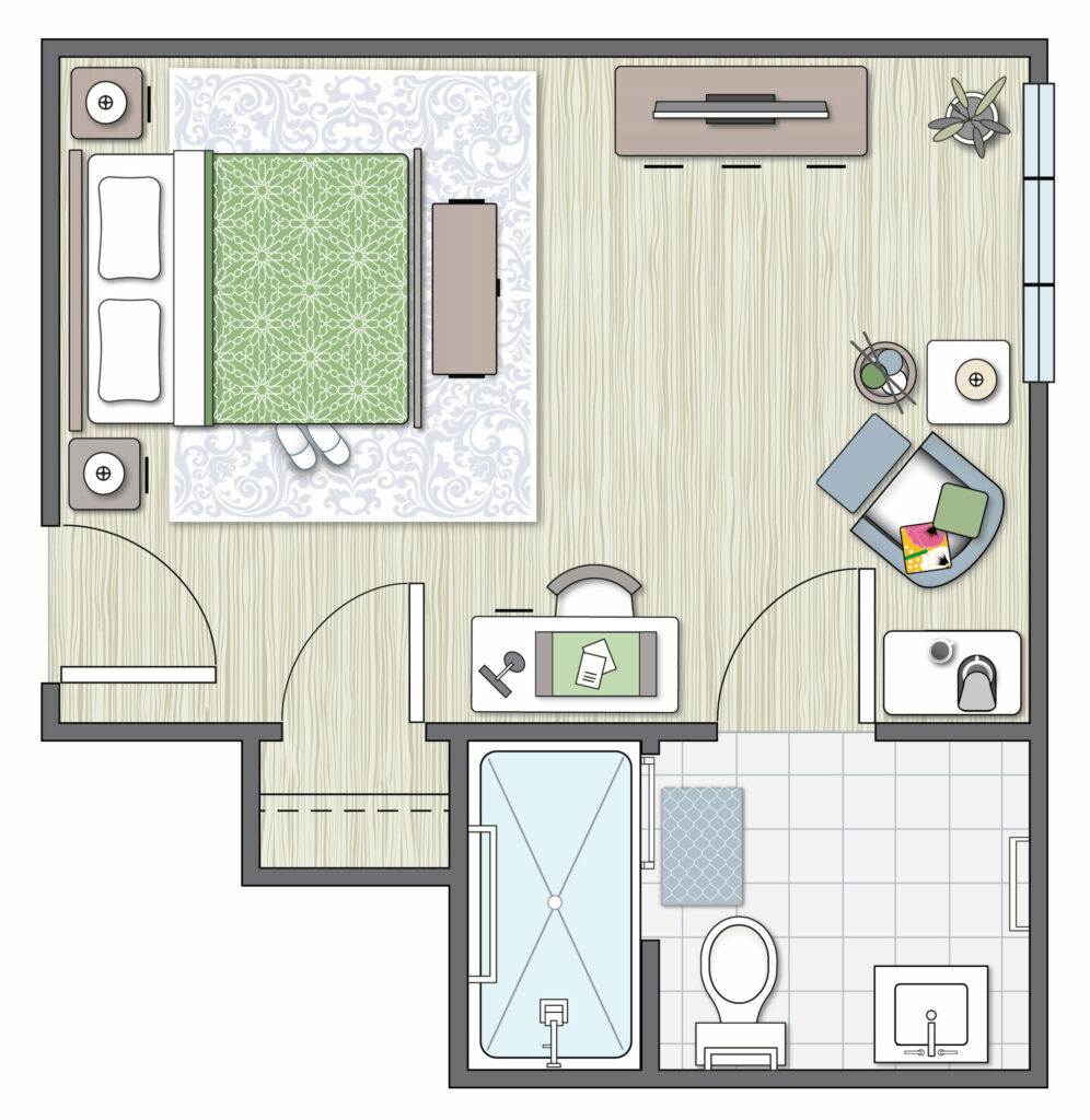 Our senior living community features an expansive courtyard and even a walking track around the building that promotes healthy activity. We ensure a delightful experience by offering amenities such as southern-style cooking, beauticians and barbers, housekeeping services, and much more!
